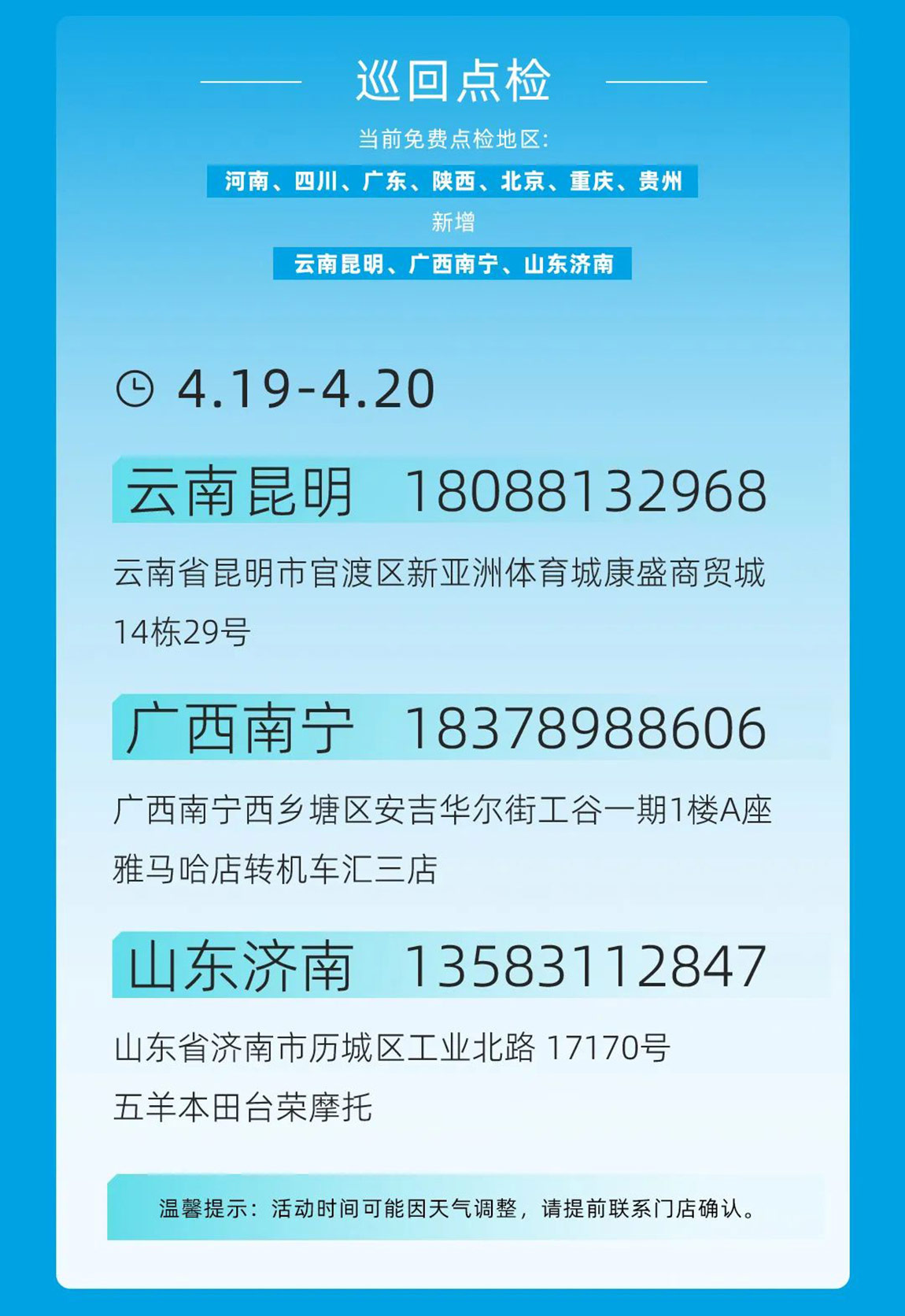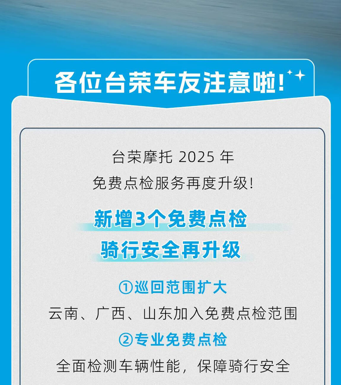 Inspection Benefits Increased! 3 New Free Inspection Locations Added, Riding Safety Upgraded!